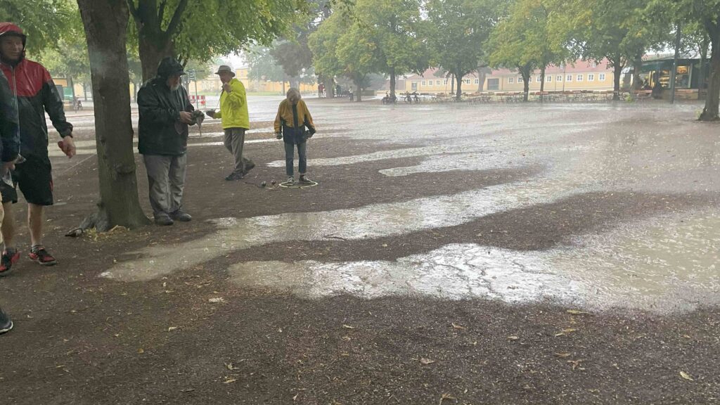 `Leichte´ Nässe von oben und Flussbildung konnten einige nicht vom Spiel abhalten…….
